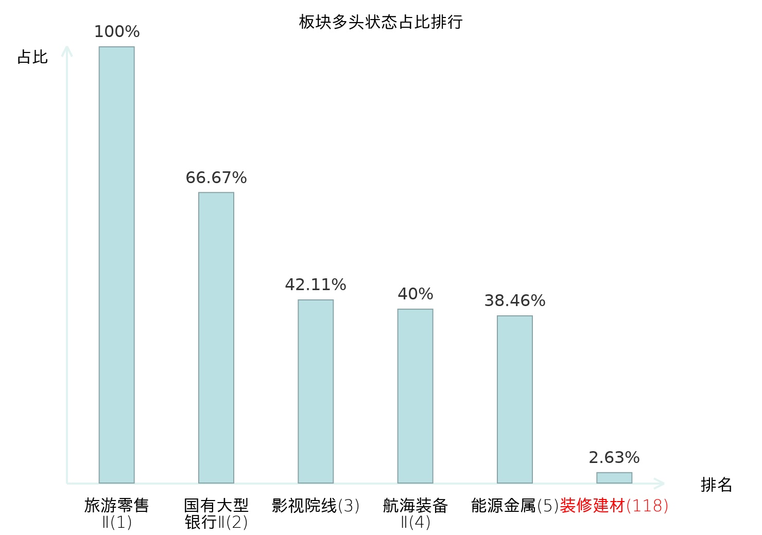 全市场所有行业板块中主力多头状态占比排名中,旅游零售Ⅱ板块位居第一。林业Ⅱ板块名次提升最快,较昨日上升102位。
