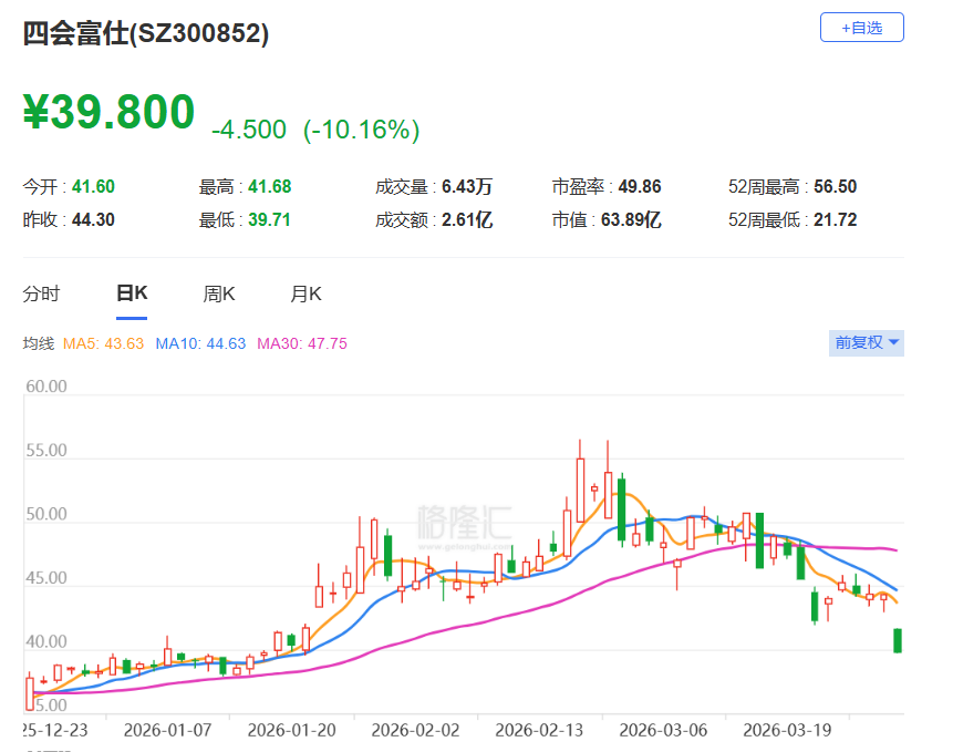 A股异动丨增收不增利,四会富仕大跌超10%,股价创阶段新低