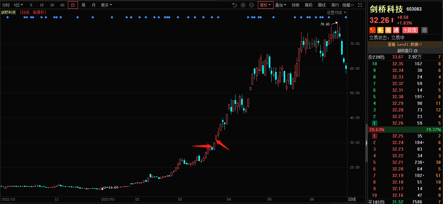 还有一个经典战役是2023年的剑桥科技,2023年3月24日,剑桥科技高位涨停,盘后龙虎榜显示,毛老板位列买一大买超1.1亿,次日剑桥科技继续涨停,毛老板这三天总共买入将近2.5亿,之后剑桥科技高位迎来加速主升浪,之后每天龙虎榜显示毛老板一直锁仓纹丝不动,直到4月6日龙虎榜显示毛老板高位卖出超3.5亿,也就是说不到半个月的时间,剑桥科技为毛老板贡献的收益,整整超过1亿!赚钱效应之夸张,毛老板理解力之强,无人能敌!