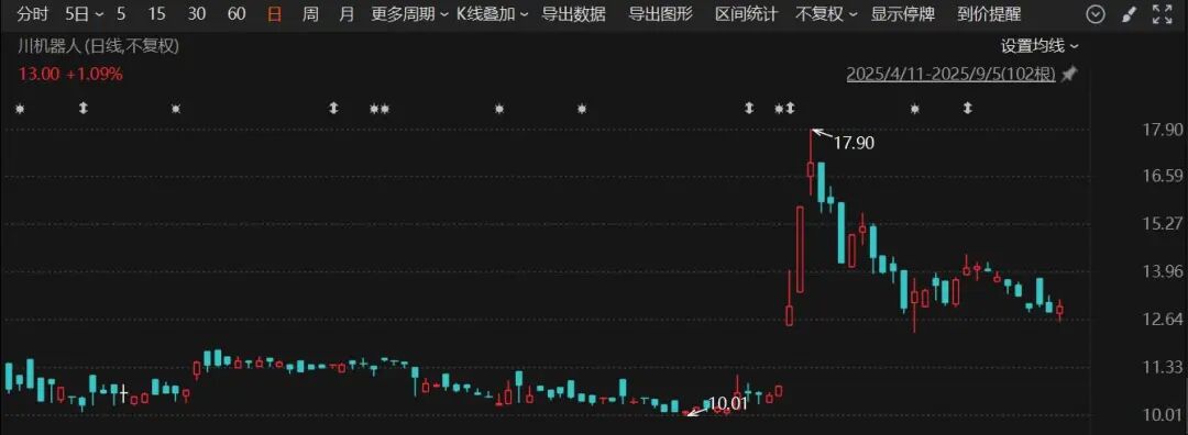 近年来,我国机器人行业在工业、军事、生活等多领域均呈现蓬勃发展态势,川机器人作为其中的代表性企业,正以全栈自研的技术实力,在人形机器人赛道上稳步前行。今年以来,该股累计涨幅达61.49%。
