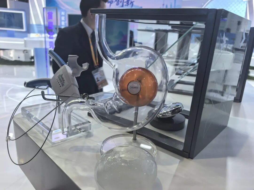 波士顿科学展台展示的代表性减重产品Orbera365内镜引导胃减容球囊系统同样备受关注。作为一款胃内球囊置入术创新产品,该款产品相比传统的袖状胃切除术、胃旁路手术等,可经内窥镜从口腔送入胃内,通过占据部分胃容积,减少患者进食量,延迟胃排空,增强饱腹感,从而帮助患者科学减重。