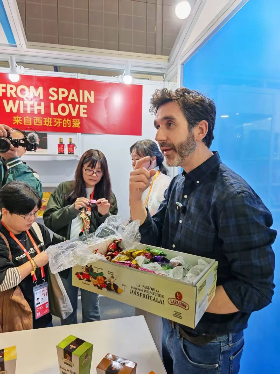 来自西班牙的激情糕饼公司今年首次参加进博会。该公司外贸经理江献在现场热情地分享公司的糖果、烤面包片等产品,并现场收集、记录大家的反馈意见。江献表示对中国市场非常看好,“今年是我们第一次参加进博会,希望今年能在这里取得突破。”