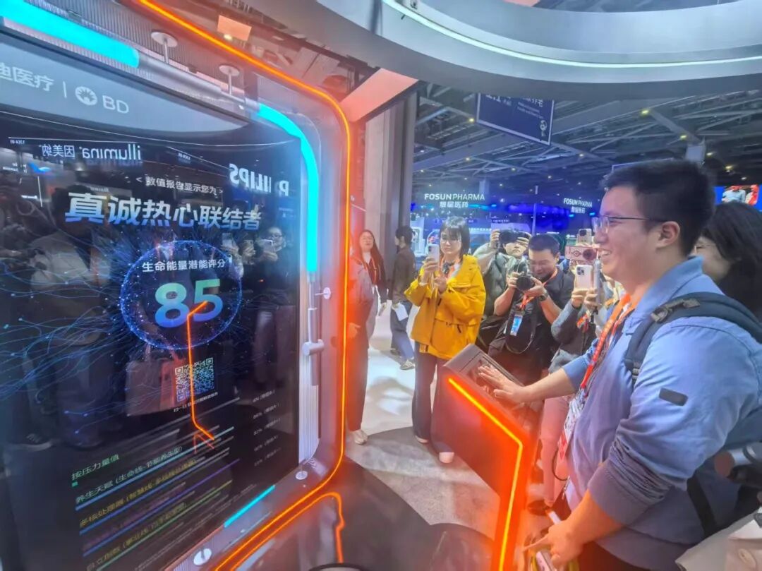 在碧迪医疗展台,体验者将手放在AI手诊健康检测装置上,即可获得一份生命能量报告。碧迪医疗大中华区企业品牌公关及数智传播总监李莎接受证券时报记者采访时表示,AI手诊健康检测装置在寓教于乐的同时,有助于强化个体健康意识,将复杂医学知识以更亲和的方式传达至更广泛人群。
