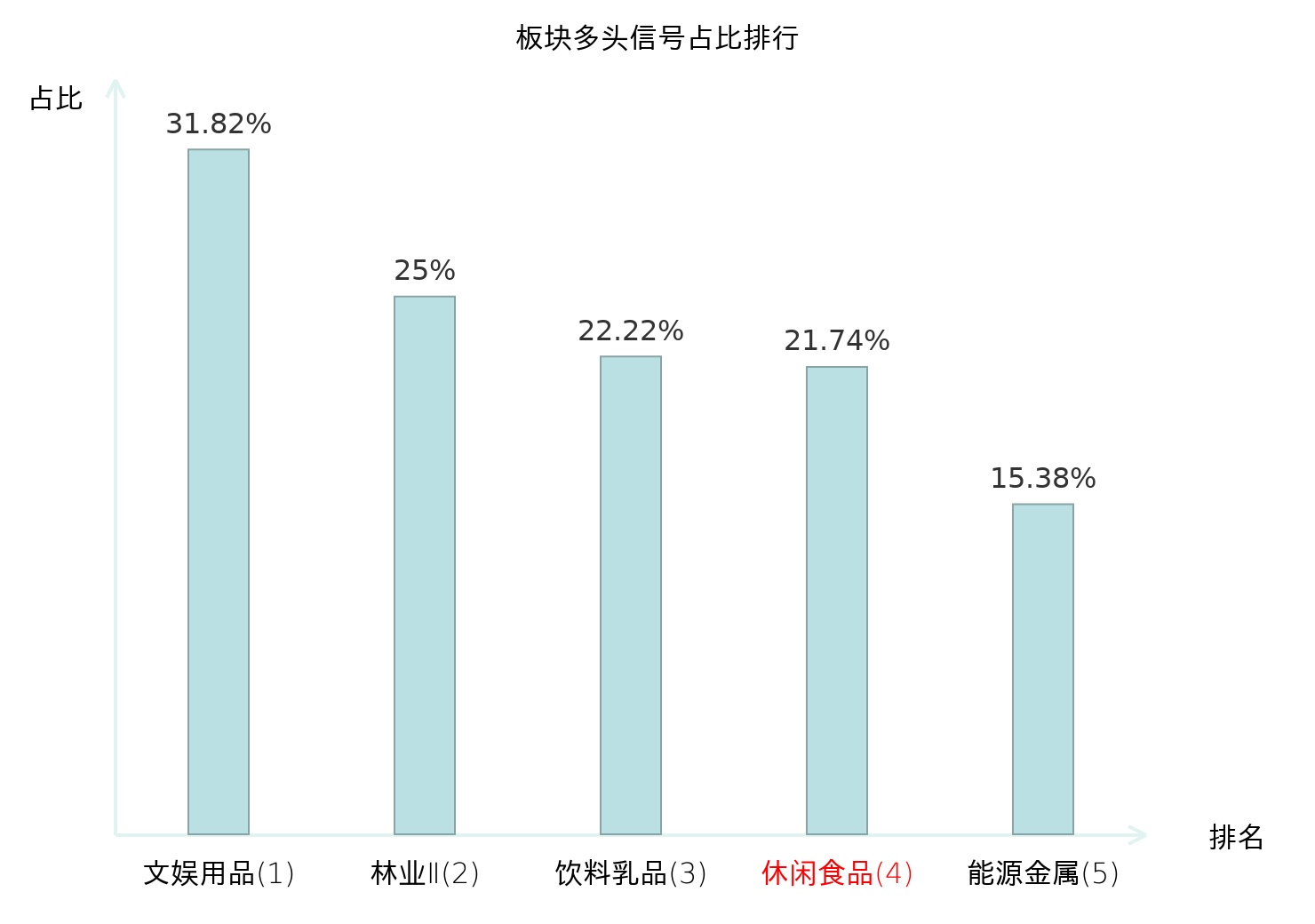 全市场所有行业板块中主力多头信号占比排名中,文娱用品板块位居第一。林业Ⅱ板块名次提升最快,较昨日上升124位。