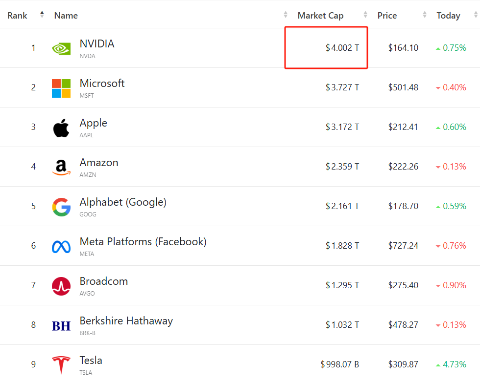 大型科技股涨跌不一,英伟达总市值首度在收盘时位于4万亿美元上方。特斯拉涨4.73%,公司CEO埃隆·马斯克透露,自动驾驶出租车服务有望在“一两个月内”扩展至旧金山湾区。