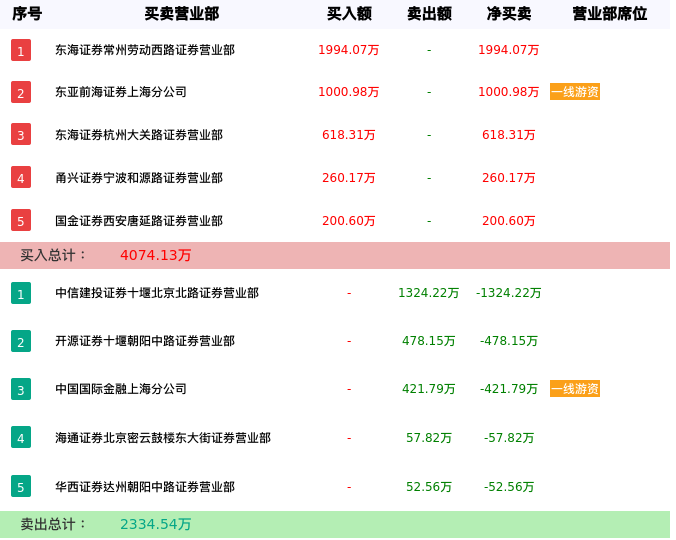 营业部席位方面,今日上榜的营业部中,有2家一线游资。