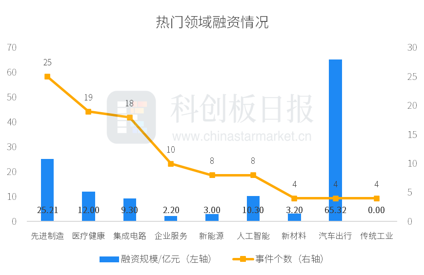 从投资事件数量来看,本周先进制造、医疗健康、集成电路、企业服务、新能源、人工智能等领域较活跃;从融资总额来看,汽车出行披露的融资总额最多,约65.32亿元。深蓝汽车完成由长安汽车、渝富控股、招银投资等共同参与的61.22亿元C轮融资,为本周披露金额最高的投资事件。