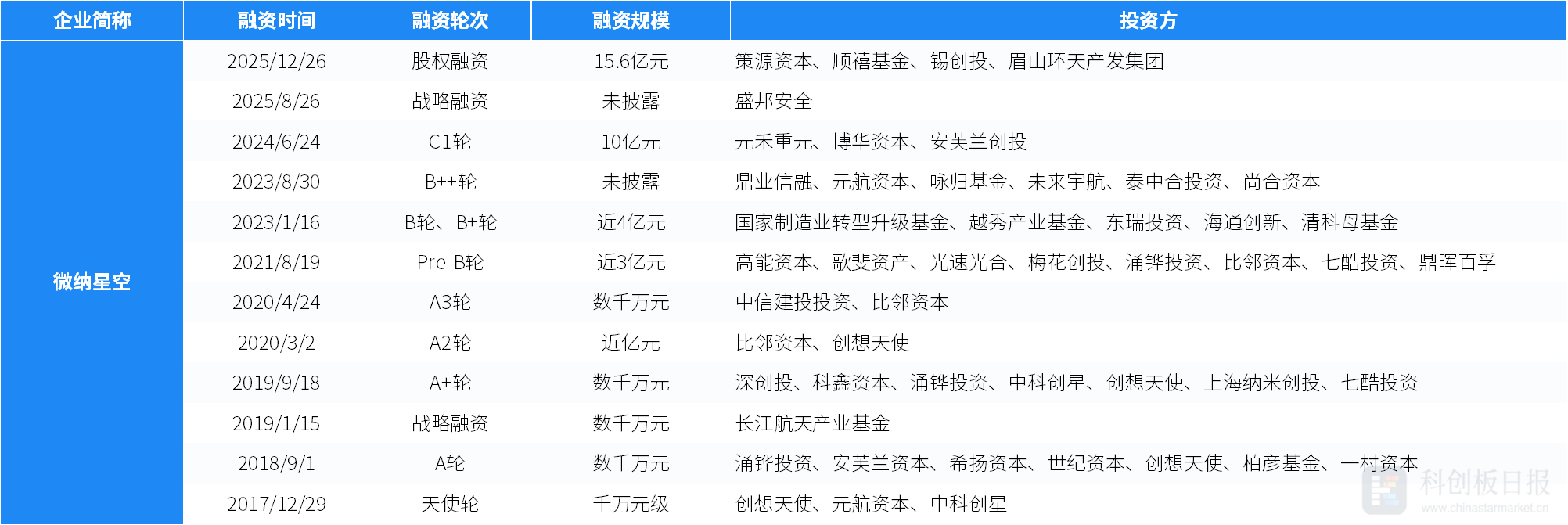 微纳星空于2025年9月获上市辅导备案登记,辅导机构为国泰海通。据《科创板日报》记者从知情人士处获悉,公司拟科创板上市。
