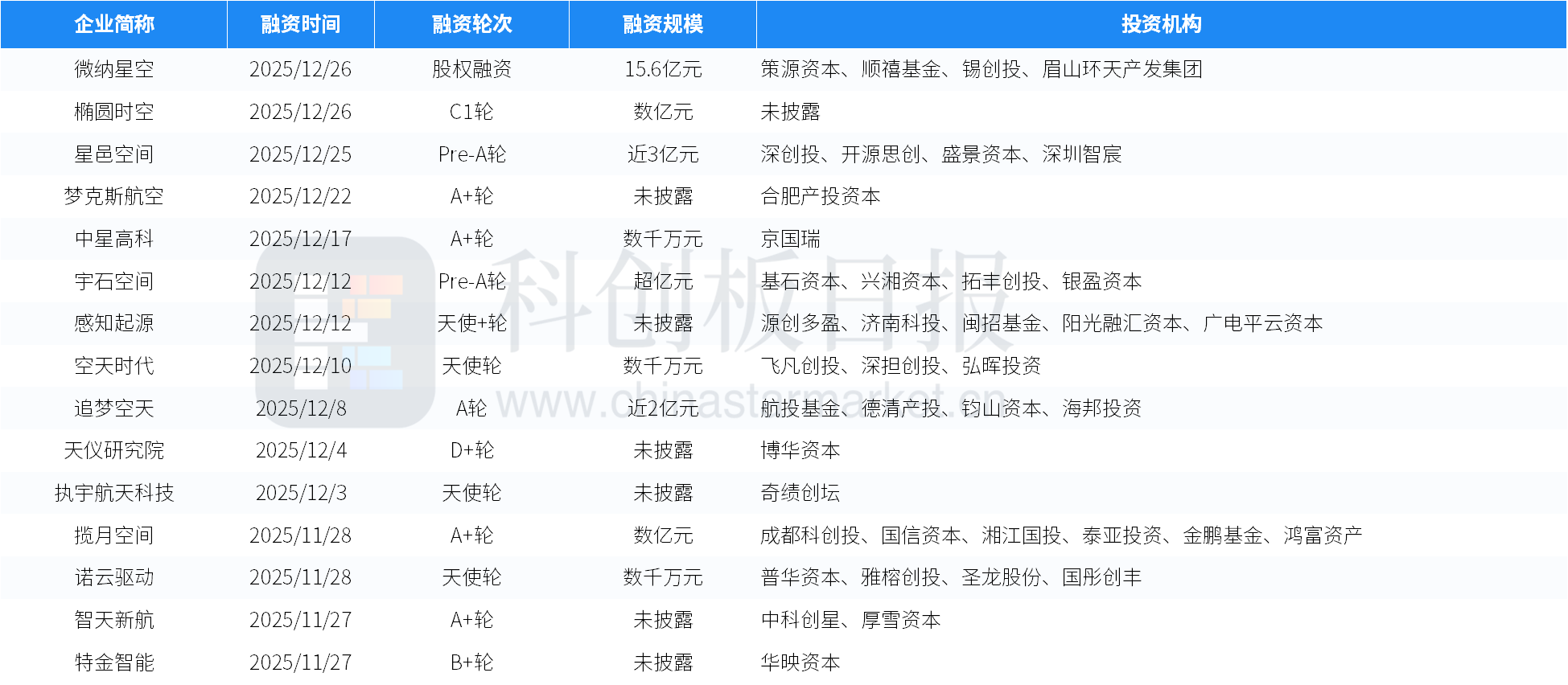 创投通数据显示,近一年来,国内航空航天领域部分获投案例如下。