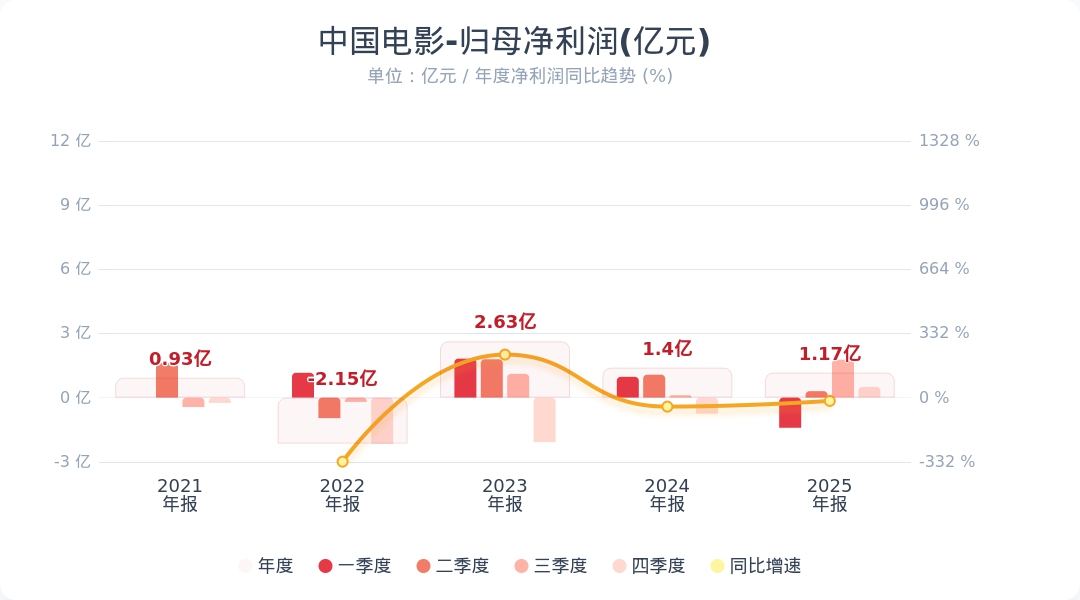 中国电影:2025年净利润1.17亿元 同比下降17.03%