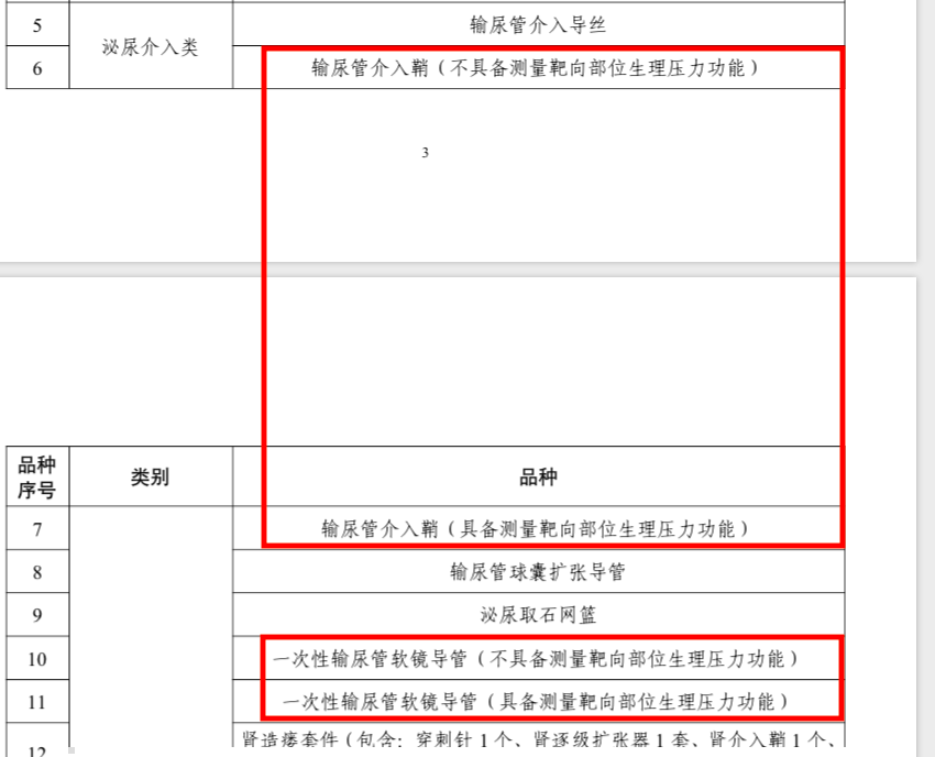 值得一提的是,对比10月份的征求意见稿(相关解读:第六批耗材国采征求意见稿流出!圈定两大品类 首次引入“锚点价”),可以看到正式文件对产品的分类会更加精细。例如,正式文件将输尿管介入鞘和一次性输尿管软镜导管进一步区分为“不具备测量靶向部位生理压力功能”和“具备测量靶向部位生理压力功能”两类,并为此设定了不同的限价(最高有效申报价)。