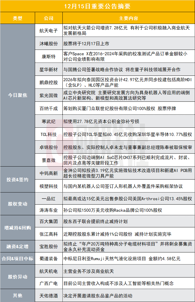 航天机电(600151.SH)发布股票交易异常波动公告,公司主营业务不涉及商业航天。公司目前主要经营汽车热系统产业和光伏产业两大产业。