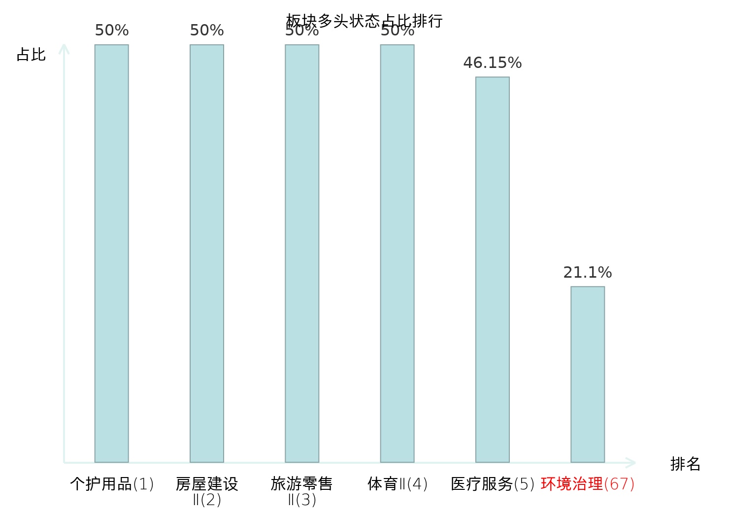 全市场所有行业板块中主力多头状态占比排名中,个护用品板块位居第一。影视院线板块名次提升最快,较昨日上升56位。