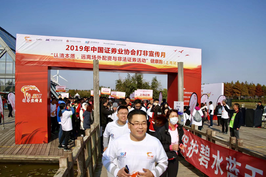 2019年12月7日,由中国证券业协会、中国证监会上海监管局、上海市证券同业公会、“中证协投资者之家”互联网投教基地联合主办的“2019年打非宣传月‘认清本质,远离场外配资与非法证券活动’健康跑(上海站)“于崇明东滩湿地公园成功举办。