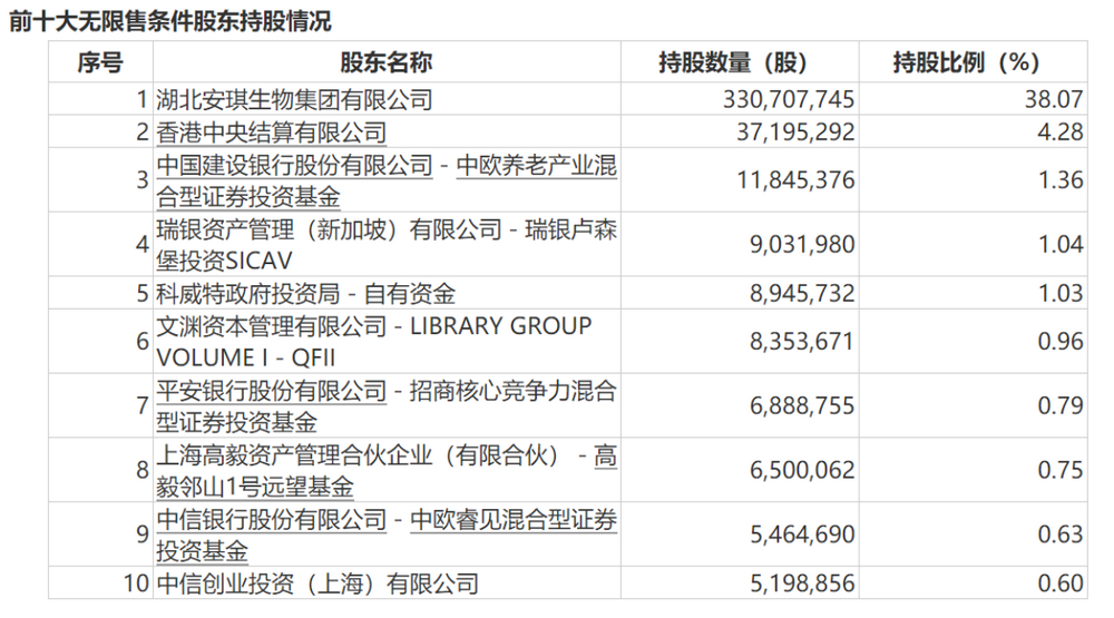 因回购事项,安琪酵母在11月21日披露前十大股东和前十大无限售条件股东持股情况,截至11月20日,中欧基金、招商基金旗下的3只产品,以及高毅资产旗下的1只产品入列该股前十大流通股东。