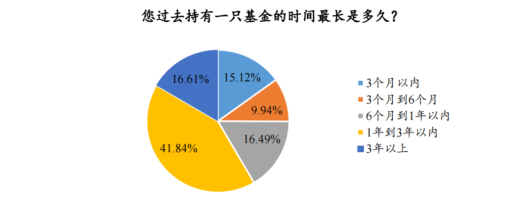 值得一提的是,在研究投资决策这一部分,《报告》还专门对基民持有基金的时长进行了统计。59%的用户持有一只基金的最长时间超过一年,但仍有41%的用户持有一只基金最长时间低于1年。《报告》认为,短期持有者更容易受到市场波动和情绪影响,从而频繁换仓。这会因基金交易费用而降低投资者的收益率,也会增加市场的波动性。相比之下,长期持有者通常更具稳定性,可以为市场提供更持久的资金流动。