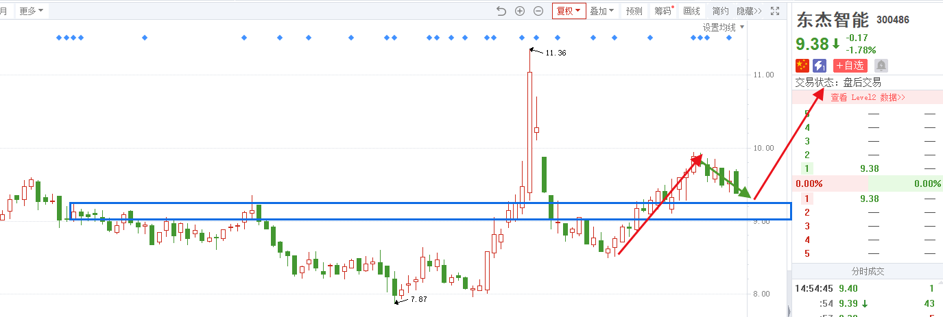 本周教学计划:保持跟踪。上周五有个减持,但比例只有0.85%,比例不大,而且相比起来已经很抗跌了,没有说是大幅的走低,上周五正好回踩到20日均线附近,这里也是前期突破的起点,盘中回踩后反弹。思路上,如果说继续反弹上去了,则不动,如果说盘中有加速回撤,那就先离场。目前观察,如有变动再做提示。
