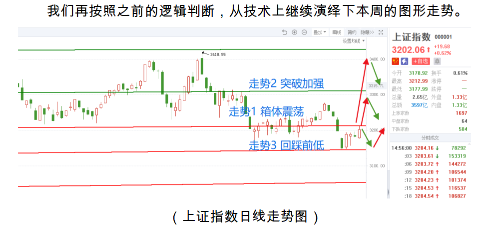 我们再按照之前的逻辑判断,从技术上继续演绎下本周的图形走势。