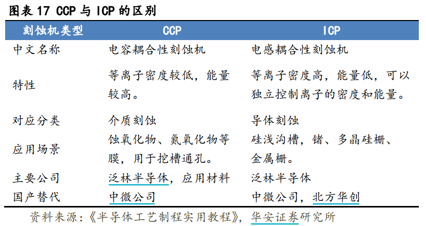 而按照蚀对象划分可以分为介质刻蚀和导体刻蚀(导体刻蚀又可以分为金属刻蚀和硅刻蚀)。这两类刻蚀对象分别对应了CCP和ICP刻蚀设备。CCP和ICP的市场规模近年来此消彼长。