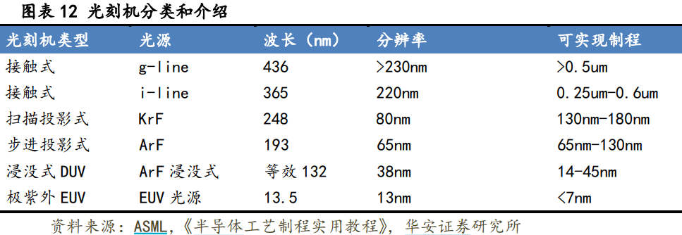 我国的光刻机仍处于产业化的起步阶段,目前,上海微电子已经能实现90nm量产(600系列光刻机),正在攻克28nm光刻机,与ASML的技术实力仍有较大差距,国产光刻机亟待突破。