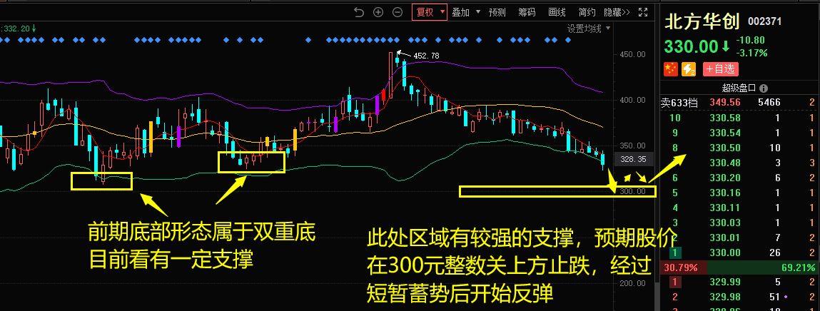 2、预期股价略微惯性下探后,此区域300.00元整数关口上方附近有较强的支撑预期,短暂经过一段时间蓄势后大概率将开启反弹波段,然后在合适的压力位附近进行高抛。