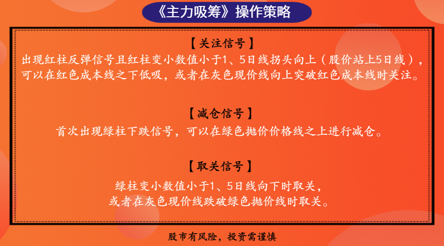 《主力吸筹》是九方智投擒龙版特色智投工具,是谢老师结合20多年经验独创的研究成果,也是各位学员朋友的专属权益。大家一定要熟练掌握,并学以致用。