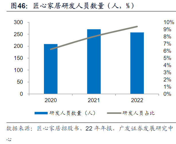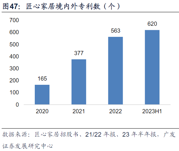 匠心家居:公司成立以来专注智能家具业务,掌握智能电动沙发、智能电动床及其核心配件的研发、设计、生产技术,成为全球智能家居行业重要ODM供应商,与多家国际知名家具企业建立良好长期业务合作关系,始终坚持自主研发、自主创新,研发费用率均处于前列,截至2023一季度拥有603项境内外专利以及161项尚在申请中的专利。