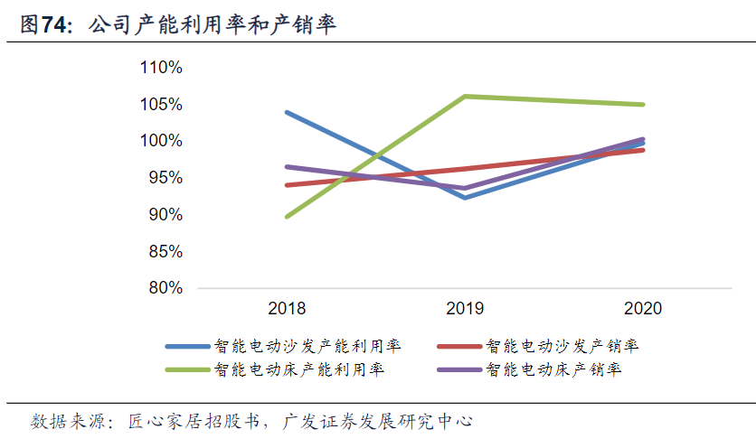 公司产能利用率较高,募投项目改善产能瓶颈,2018-2020年智能电动沙发和智能电动床产能利用率、产销率均接近100%,产品需求量已触及产能上限,随着产能提升,营收将迎来更高增长。设有常州、越南两地产能,越南产能工序覆盖全面;其中越南工厂于2019年完成建设并于下半年投产出货。