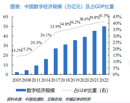 2022年,我国数字经济规模首次超过50万亿元,占GDP比重已达41.5%。经济步入新常态以来,我国GDP增速下滑至8%以下,而数字经济2015-2022的CAGR超15%,已经成为我国经济发展的压舱石。数据显然已成为全新的关键的生产要素。