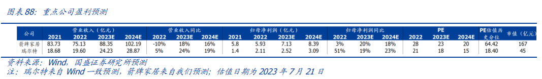 上市公司投资机会方面,箭牌家居是国货卫浴龙头。公司智能化发展方向明确,2022年智能马桶销售收入13.9亿元。2023年公司通过大力推动轻智能产品以抢占下沉市场份额,智能化升级叠加搭配套系化销售,有望带动客单值继续增长。