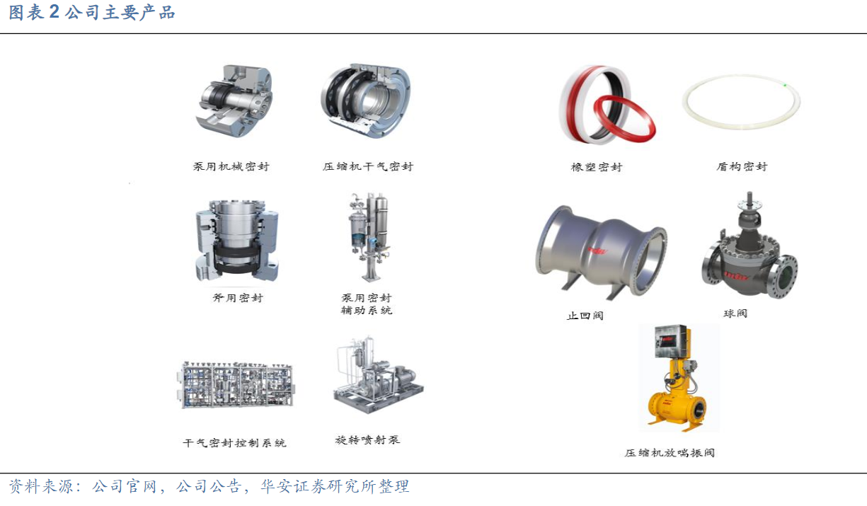 公司深耕密封件行业,已具备较大技术优势,主要产品为密封件,包括机械密封、干气密封、密封辅助控制系统等。公司核心产品在密封效果、密封安全性和使用寿命等性能方面已处于国内领先水平。