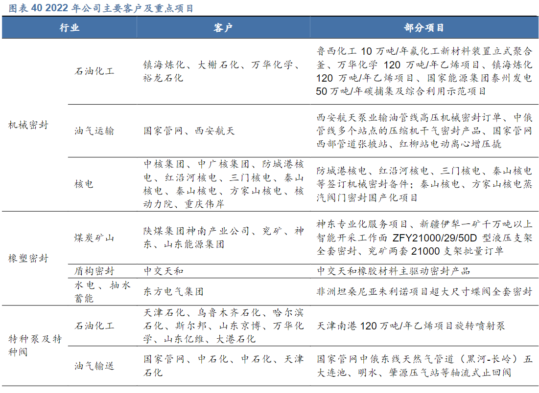研报菌简评:公司下游客户主要包括对石油化工、煤化工等终端客户的现有装置进行机械密封改造、备件销售和密封产品修复,以及为主机厂机组的机械密封配套。