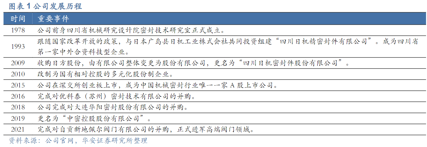 公司是中国最早开展密封技术研究的单位之一,也是目前的机械密封行业龙头,业务重心集中于石化用的机械密封,并开始逐步拓展干气密封等。通过设立子公司、收购专利和整合业务等形式,形成了完整的机械密封产品体系。
