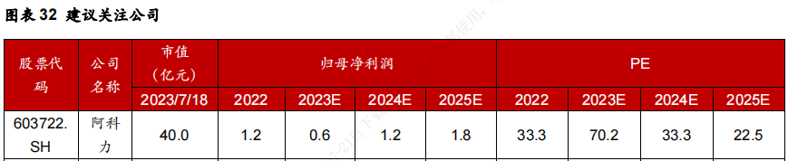 上市公司中,阿科力是国内研究及生产COC的领先企业,目前已有5000吨中试将于今年投产,同时在专利上布局全面,研发水平、产业化进展处于行业前列。后续公司在湖北潜江规划扩产3万吨COC及配套单体。