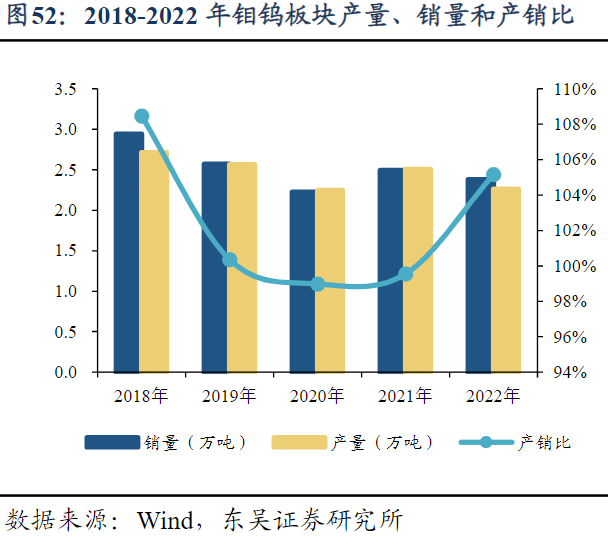 公司是全球领先的钼、钨生产商,通过精细化管理营收显著增长,产销量较为稳定,产销比角度能够完全消化。从事钼、钨金属的采选、冶炼、深加工、科研等,拥有采矿、选矿、冶炼、化工等上下游一体化业务,主要产品包括钼铁、仲钨酸铵、钨精矿及其他钼钨相关产品,同时回收副产铁、铜、萤石、铼等矿物。