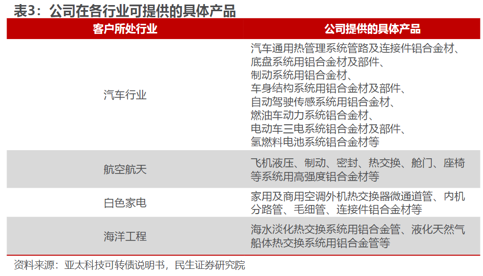 公司是全球汽车热管理系统零部件材料和汽车轻量化系统部件材料领域的重要供应商,客户众多,在汽车热管理系统材料和汽车轻量化系统部件材料领域,已成为多家头部客户的合作伙伴,应用终端包含理想、比亚迪、蔚来、小鹏、丰田、奔驰、宝马、大众等车企,是国内汽车铝材重要供应商。