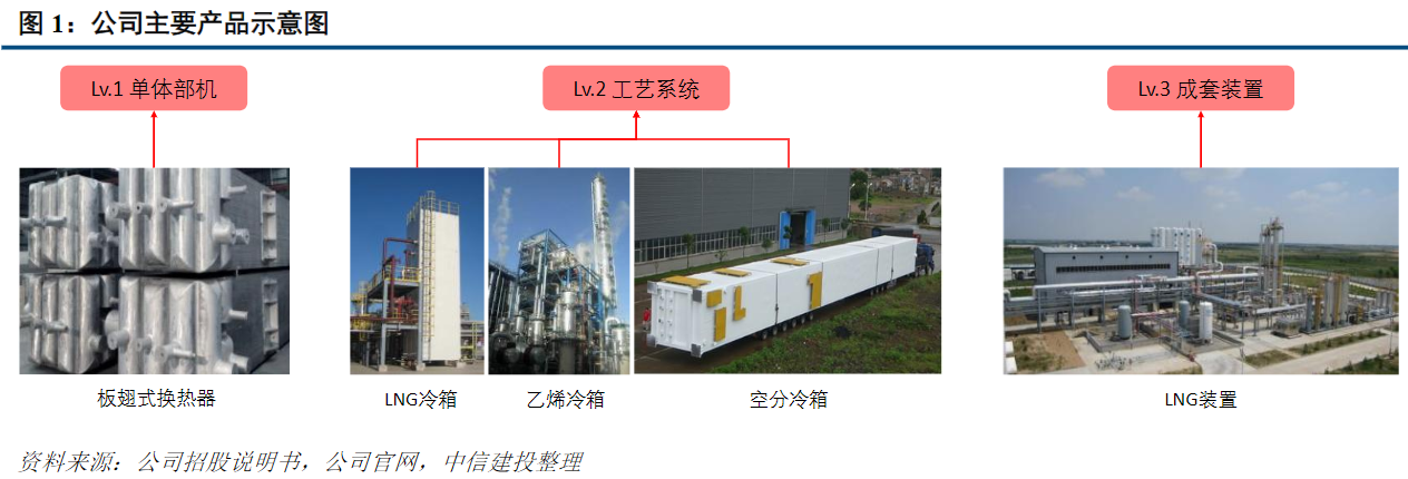 研报菌简评:公司是国内深冷技术设备头部企业,主要产品为板翅式换热器、冷箱和成套装置,下游包括LNG液化、煤化工、石化等领域。