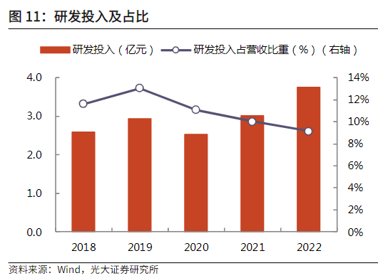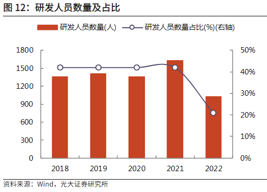公司研发团队实力雄厚,多位高管拥有自动控制、自动化学术背景,是研发驱动型企业,长期以来保持高强度的研发投入,上市以来研发投入持续加大,2011年起研发费用率始终保持在10%以上,高度重视研发团队的建设和维护,近十年来研发人员占总员工人数比一直保持在40%以上。
