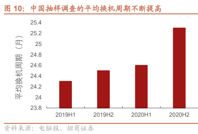 研报菌简评:中国抽样调查的平均换机周期不断提高,对于公司的供货有积极影响。