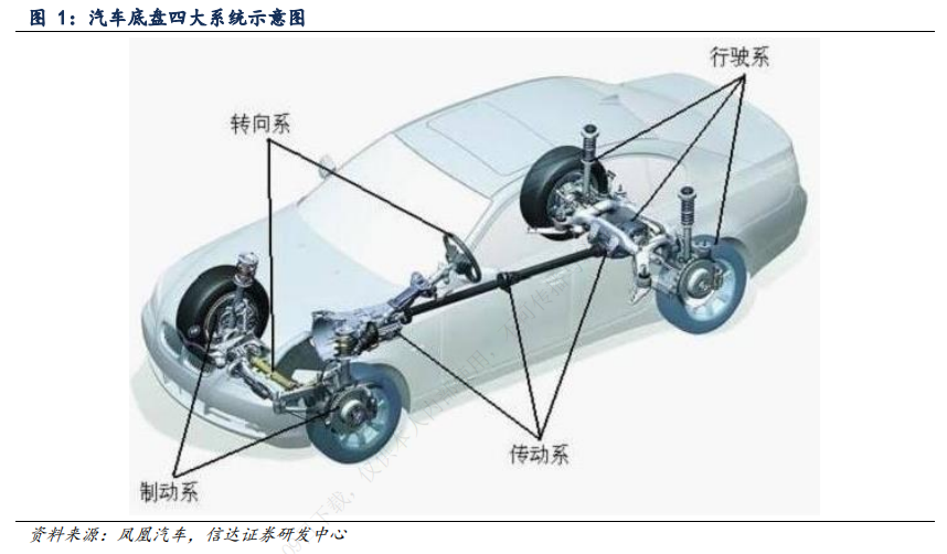 汽车的底盘由传动系统,转向系统,行驶系统,制动系统四大系统组成,包括驱动、换挡、制动、悬架、转向五大部分,其中汽车转向系统是用于改变或保持汽车行驶方向的专门机构。