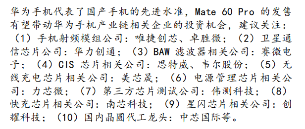 Mate60Pro发布!华为新机产业链布局机会了解一下?