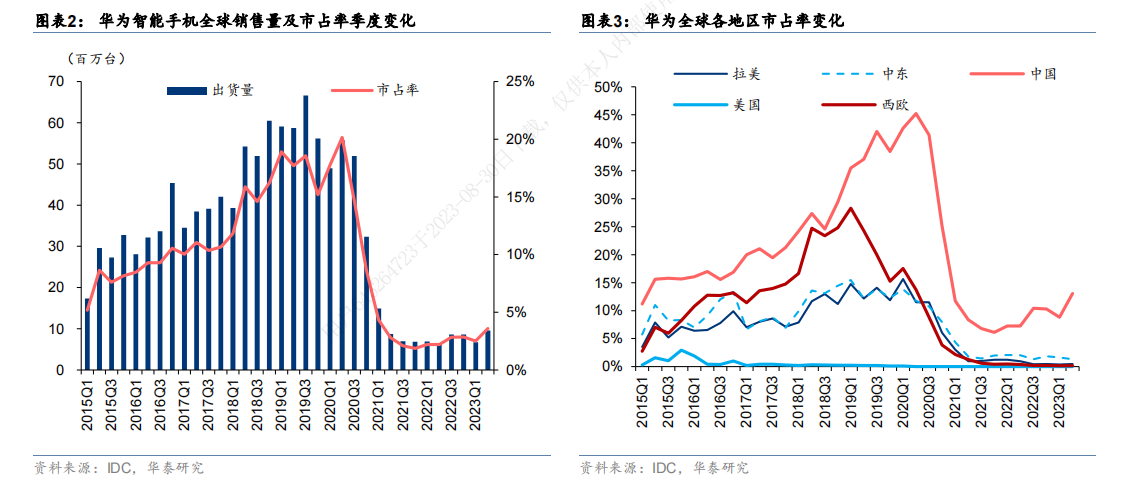 今年,市场期待mate60凭借5G功能回归中国智能手机市场。根据IDC的统计,2023年第二季度,在中国手机市场需求偏弱的环境下,华为的中国手机出货量已进入了前五,回到了13%的份额。机构认为,华为若能解决5G芯片供应问题,那么将很快回归高端手机第一梯队行列。