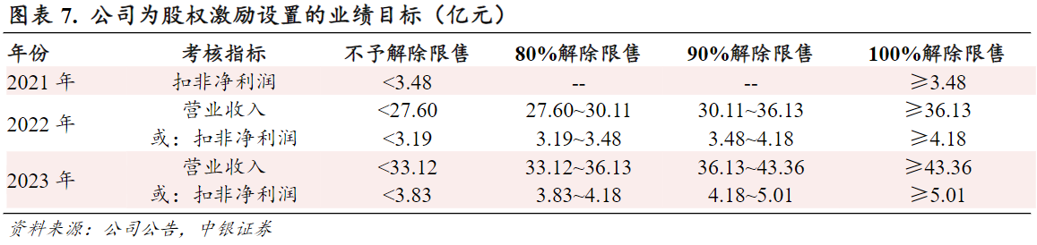 公司股权激励有序推进,有望激发员工积极性,于2021年9月推出股权激励计划,分两批共授予115名员工累计795.72万股限制性股票,设定了21-23年解禁股权的业绩目标,根据股权激励设置的业绩目标,2023年限售股全部解禁,需要实现营业收入43.36亿元或扣非净利润5.01亿元,将员工利益与公司利益深度绑定,有利于增加员工的积极性。