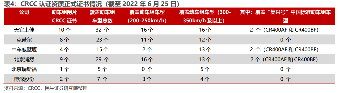公司是持有CRCC核发的动车组闸片正式认证证书最多且覆盖车型最多的厂商,也是获得时速350公里“复兴号”中国标准动车组两个车型CRCC正式认证证书的厂商,2021年公司闸片销量25.1万片,国内市占率约30%,市场份额稳定。