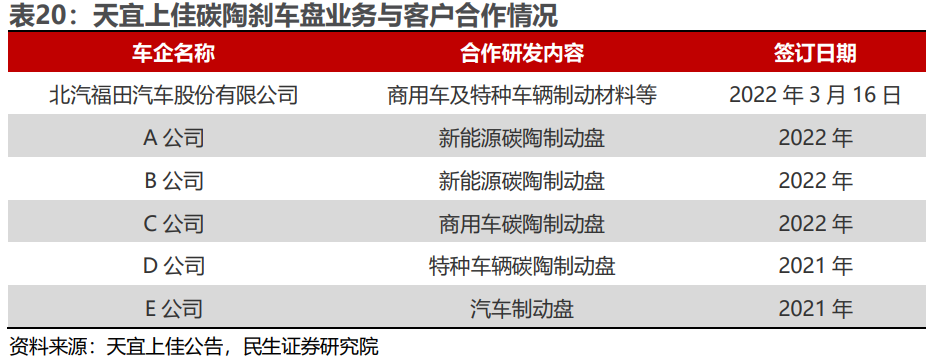 公司定增布局高性能碳陶刹车盘领域,投资总金额约13.8亿元。项目建成后,可年产60万盘高性能碳陶制动盘,2021-2022年,公司目前已与6家新能源、特种车签订了碳陶刹车盘的合作协议,未来订单充沛。