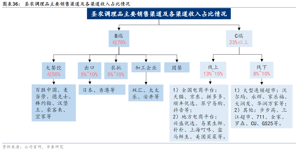 研报菌简评:总的来看,公司调理品深加工板块销售渠道可分为B、C两端,截至2022年,B端渠道收入占调理品总收入比重超70%。