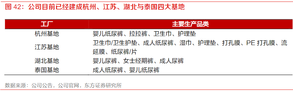 公司是国内个人卫生护理用品领域领先的制造商,个护ODM龙头企业,专注于妇、幼、成人卫生护理用品的研发、制造与销售业务,产品涵盖婴儿纸尿裤、成人纸尿裤、经期裤、卫生巾、湿巾等一次性卫生用品。