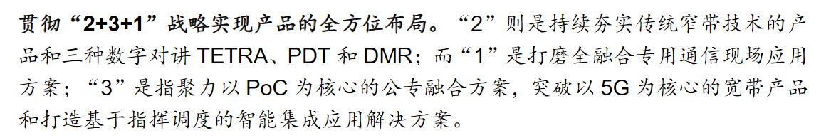 标签:专网通信龙头、2+3+1战略、拓展渠道、研发投入