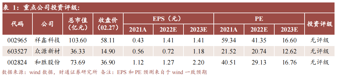 另外,和胜股份也是国内电池托盘领先企业,技术实力雄厚。公司率先配合客户成功开发第二代无模组(CTP)电池托盘,拥有全面的电池托盘型材、冲压、压铸等工艺路线技术储备,形成了交付规模、研发能力和生产制造等方面的领先优势,与下游新能源汽车领域的头部企业宁德时代、比亚迪、广汽埃安等达成深度合作。