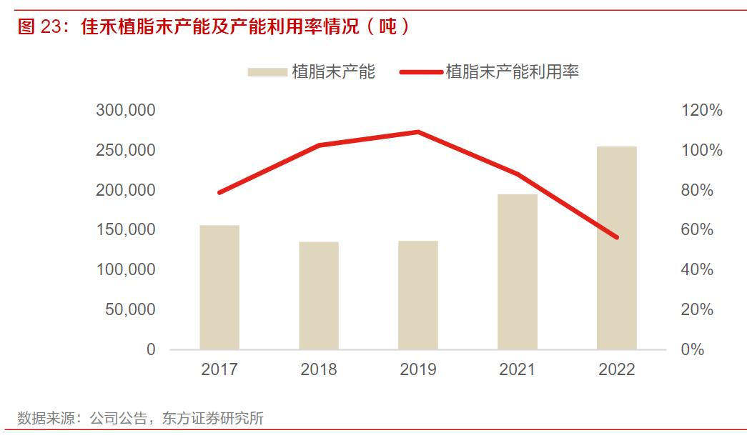 公司产能充足保驾护航,销售量价齐升,截至2022年公司有植脂末产能25.5万吨/年,在国内企业中扩产规模最大,为公司长期发展奠定了基础。从销售端来看,当前公司的产能利用率处于持续攀升的态势,产销率保持100%左右,植脂末产品销售单价近年来呈现稳定增长态势。